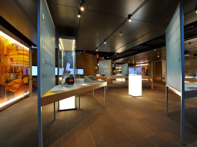 The 3,000 square foot Bell Labs Technology Showcase is a multimedia and artifact rich experience that brings to life the brilliant inventions and discoveries made by Bell Labs researchers over the past century, and explores the way we will communicate in the future.The space includes such unique artifacts as the first telephone, the original transistor, and a Telstar satellite, as well as the human stories of the thinkers and researchers who continue to achieve and push the boundaries of science and technology.