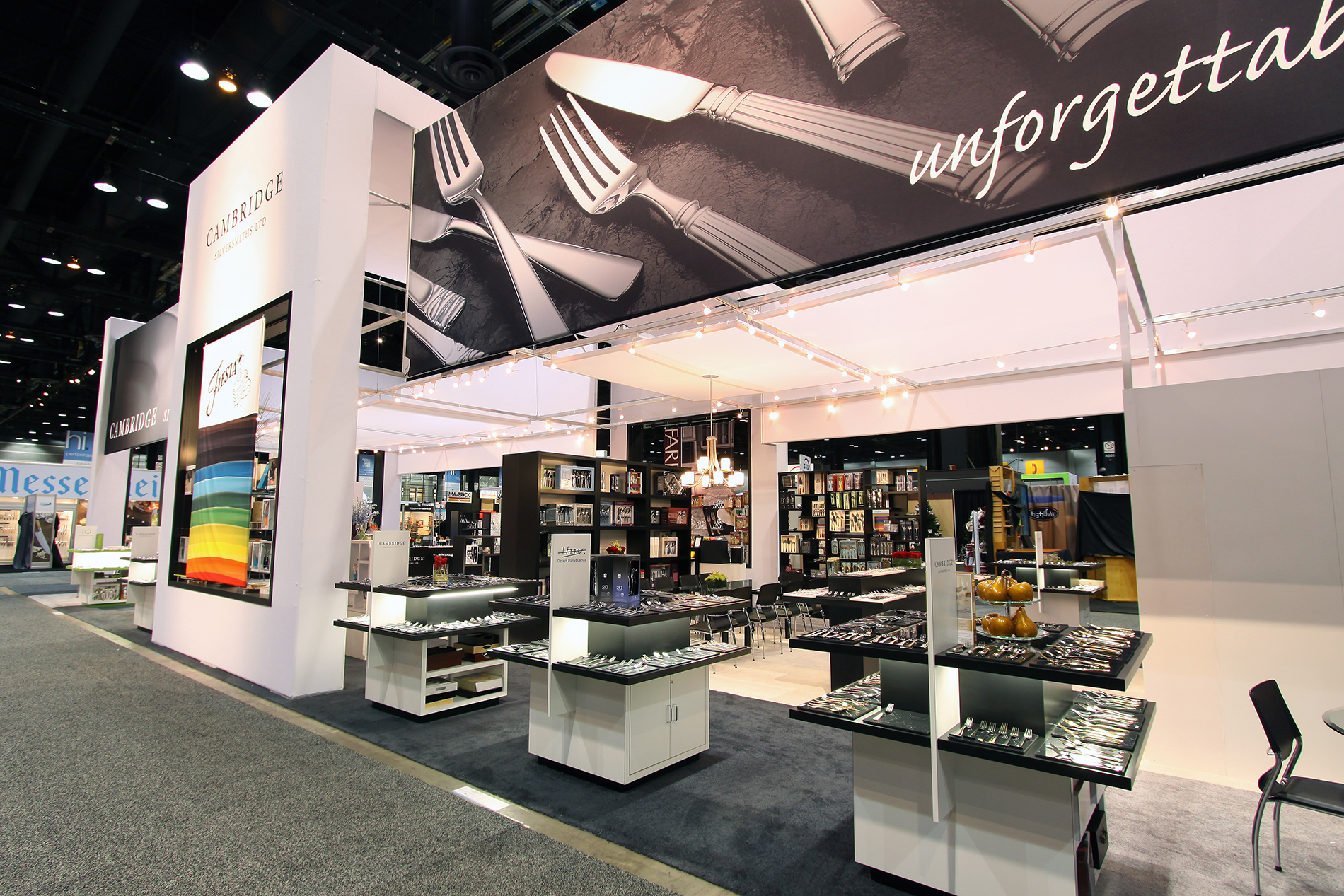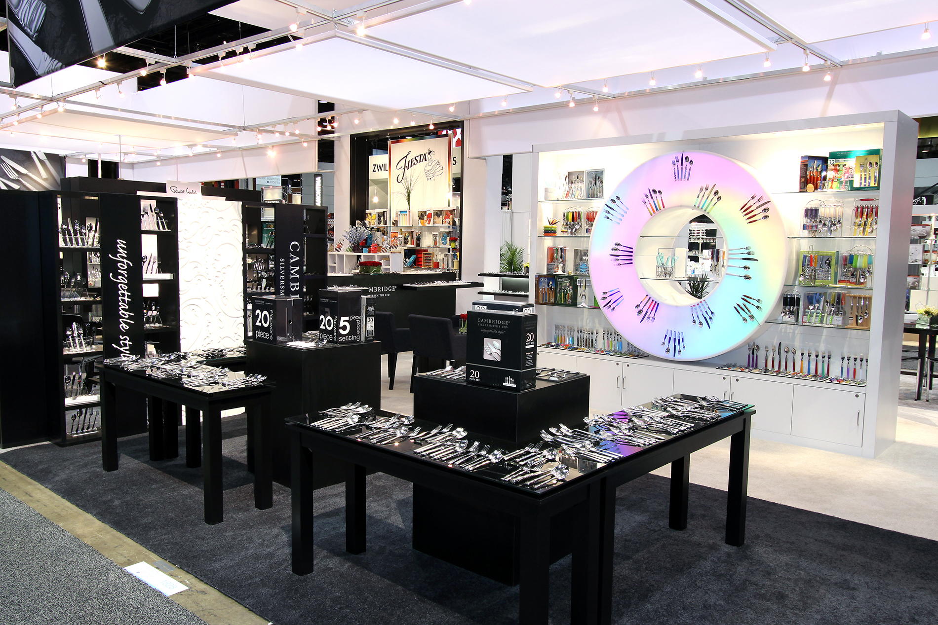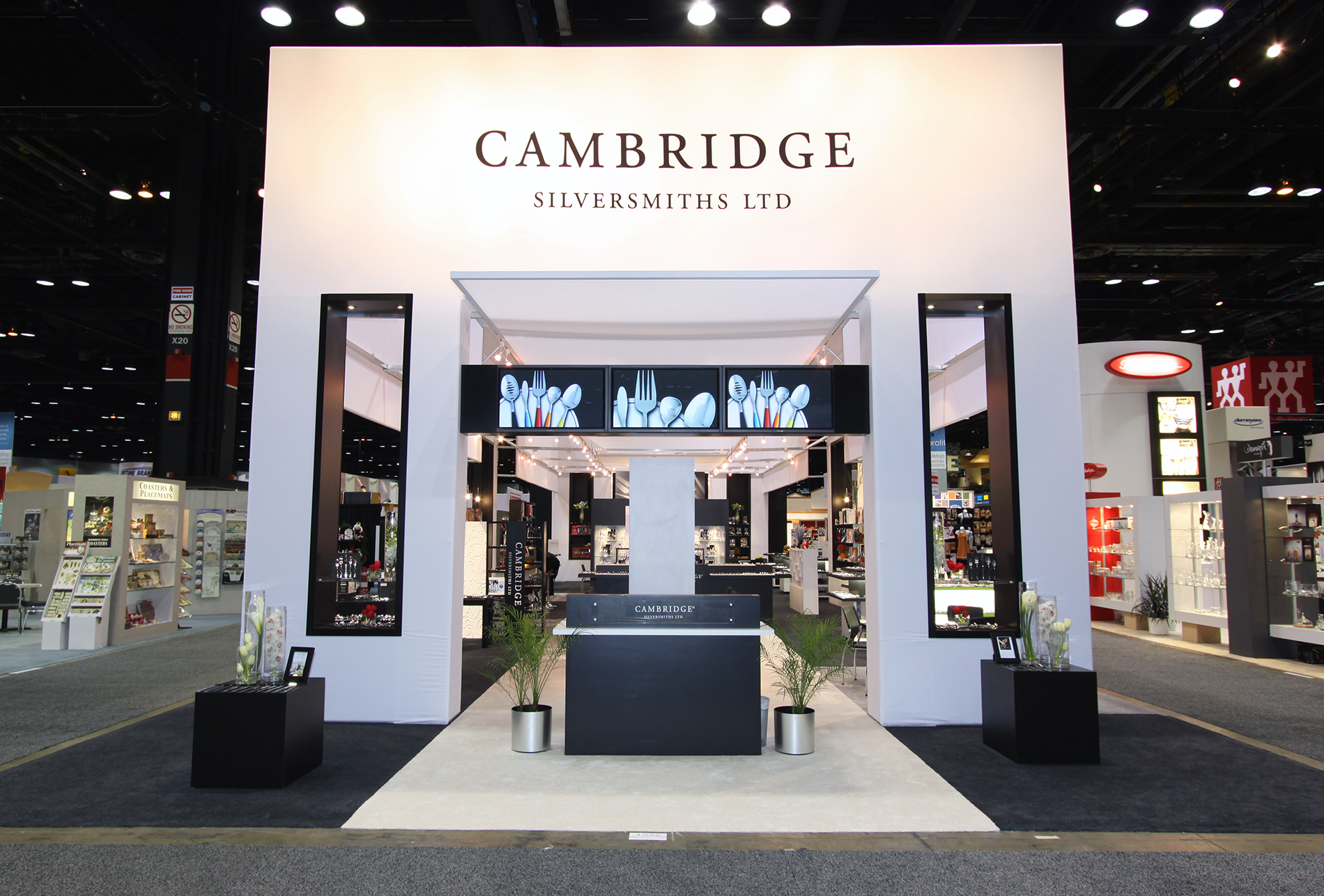 Cambridge Silversmiths looked to Dimensional Worldwide to transform well over 400 patterns from everyday utensils to famous designer collections into an impactful trade show presentation. Dimensional organized the plethora of patterns, designs and styles into a striking Manhattan boutique-showroom exhibit. Innovative displays and functional traffic flow are all enveloped in a boldly-branded fabric structure that providedhigh visibility and an exceptional brand experience in the crowded exhibit hall.