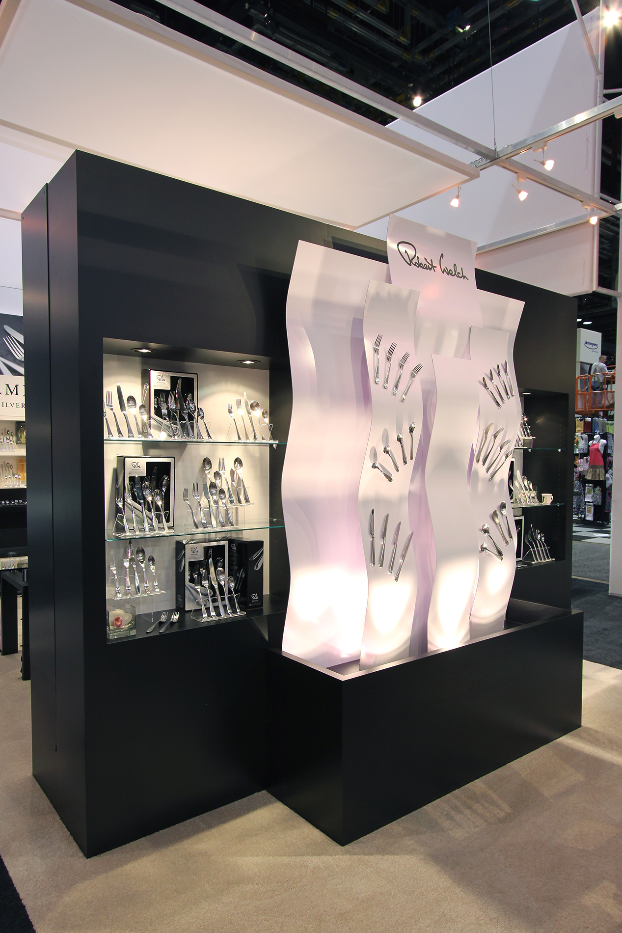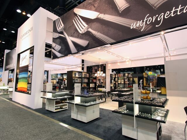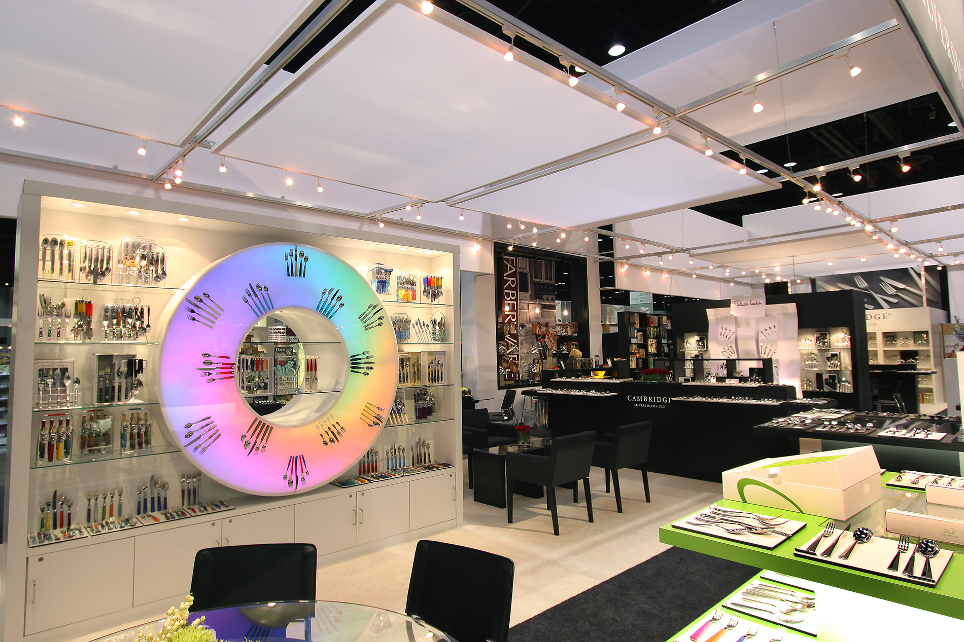 Cambridge Silversmiths looked to Dimensional Worldwide to transform well over 400 patterns from everyday utensils to famous designer collections into an impactful trade show presentation. Dimensional organized the plethora of patterns, designs and styles into a striking Manhattan boutique-showroom exhibit. Innovative displays and functional traffic flow are all enveloped in a boldly-branded fabric structure that providedhigh visibility and an exceptional brand experience in the crowded exhibit hall.