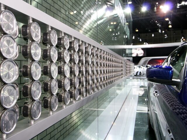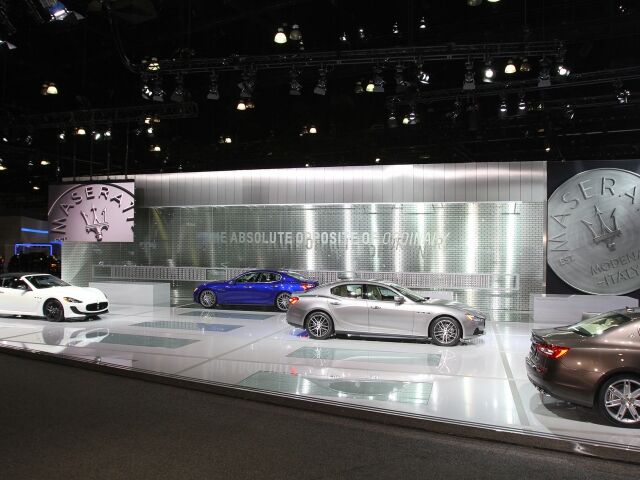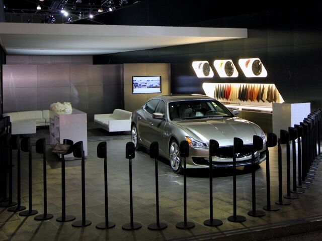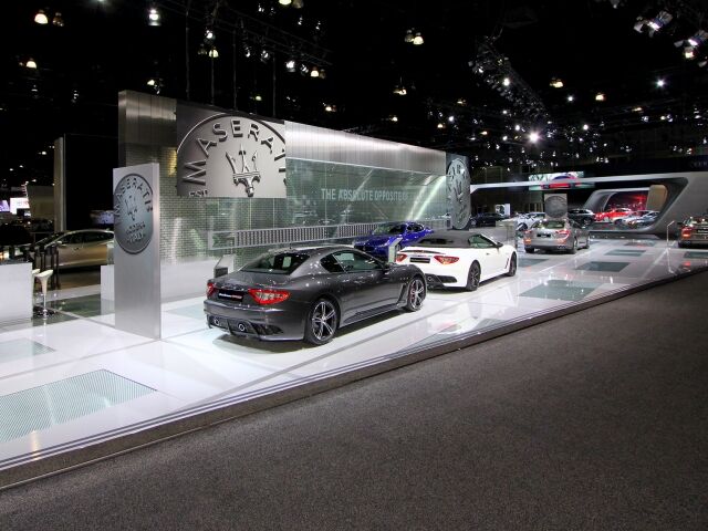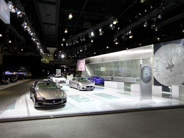 Designed by Camerana & Partners in conjunction with E-View 360, Dimensional Worldwide built and fabricated this unique and artistic interpretation of the Maserati brand image in less than 3 weeks. The design featured a glass and perforated steel floor, with a soaring 72 ft. x 20 ft. glass wall with 780 actual pistons affixed to its face, as its centerpiece. The stunning exhibit was the perfect showcase for the North American debut of the Ghibli and re-enforced the Maserati theme: “The Absolute Opposite of Ordinary.”