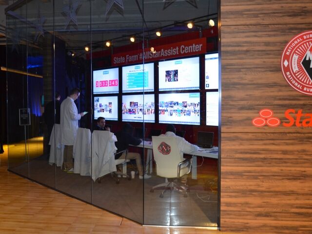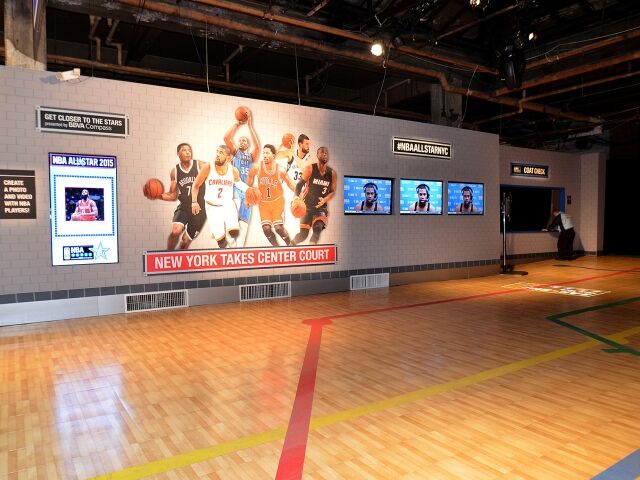 Working with MKTG, Dimensional transformed the century-old garage and sorting room of the main NYC Post Office into a 70,000 square foot “ultimate fan experience” for the week leading up to the NBA All-Star Game. Older buildings can be problematic, and this one was no exception. Our team had to compensate for uneven floors and disguise timeworn concrete, dangling wires, and rusty pipes. We created scenic and graphic walls, using our proprietary Diamond tensioned fabric system, and built a custom glass enclosure where fans could get a “behind the scenes” glimpse at social media updates throughout the event. Dimensional also constructed thirteen 26ft. tall lightbox towers that featured NBA Stars and were used both inside and outside of the event space.