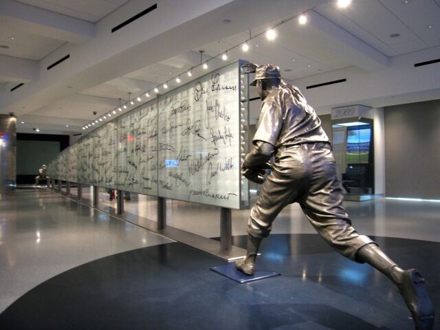 Working in conjunction with C&G Partners, Dimensional helped the New York Yankees inject some history into their new stadium. The Yankee Stadium Museum is a 3,000 square foot gallery housing permanent and rotating exhibits about baseball’s greatest team. The museum’s central space is devoted to a 52 ft. long glass installation commemorating one of the team’s most iconic moments: pitcher Don Larsen’s perfect game in the 1956 World Series. His release of the final pitch to catcher Yogi Berra has been frozen in sculptural time. The arc of the pitch itself serves as the base for a display of more than 1,000 baseballs autographed by Yankee alumni. It’s a larger-than-life experience – just like the Yankees.