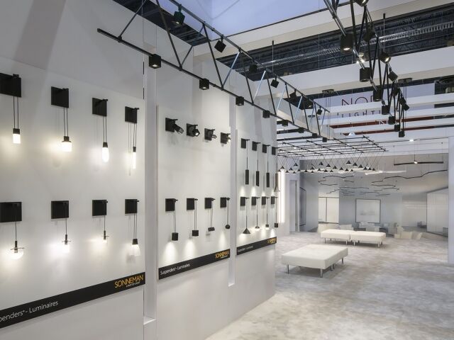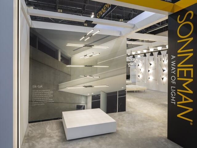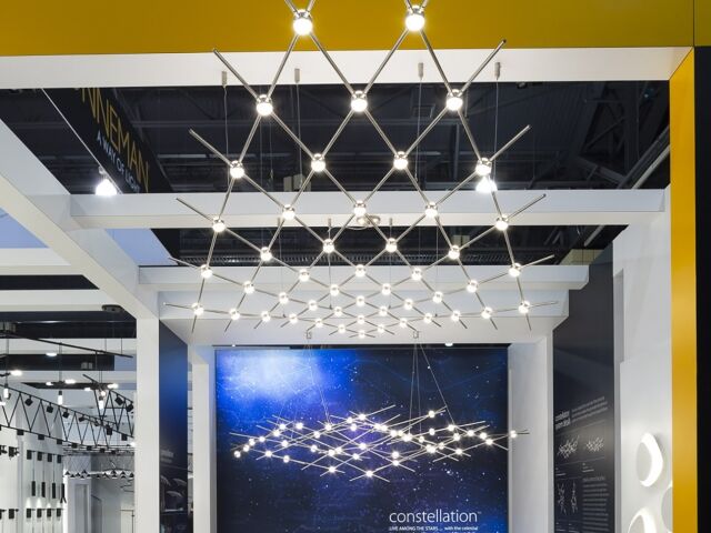 Sonneman looked to Dimensional to execute an expansion on their booth structure. With double the footprint, and a prime location on the show floor, Sonneman relied heavily on the resources available at Dimensional to create an intimate environment showcasing the ultra-modern fixtures in their collections. Like all Lightfair booths, this one included extensive product integration and a complex installation schedule; however, due to careful planning, we were able to reduce labor costs by 25% of what was estimated.
